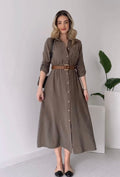 Experience comfort without compromising on style. Our new collection features a masterfully tailored casual set designed for the modern woman. The top features a classic collar and full sleeves with a trendy drop-shoulder design, while the buttoned closure adds a clean, polished look.